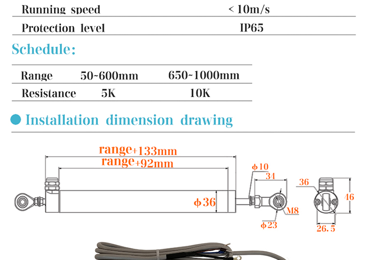 KTM micro pull rod linear displacement sensor