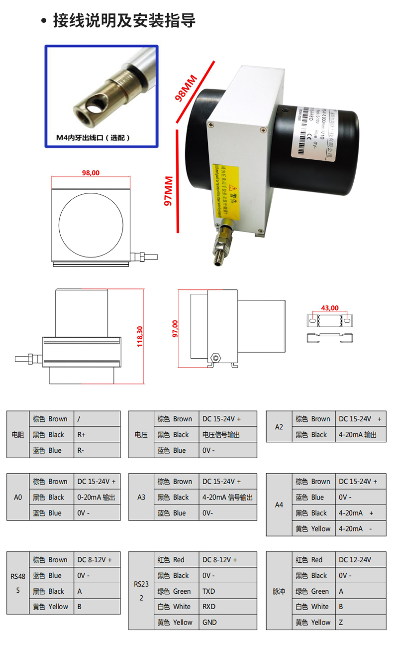 拉繩位移傳感器閘門開度儀高精度拉繩編碼器模擬量數字量信號輸出電子尺